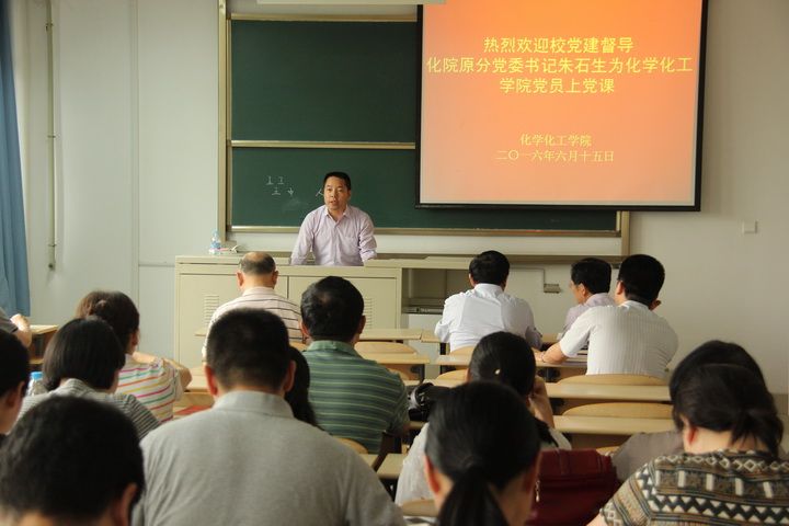 615日下午,云顶国际官方网站分党委邀请公司党建督导朱石生为全院教工党员上了一堂题为“学习新党章做合格党员”两学一做学习教育专题党课。