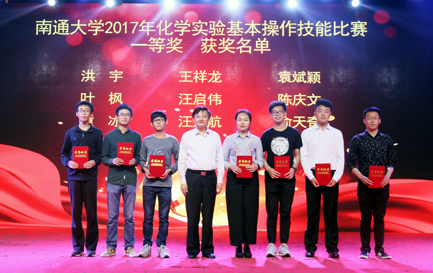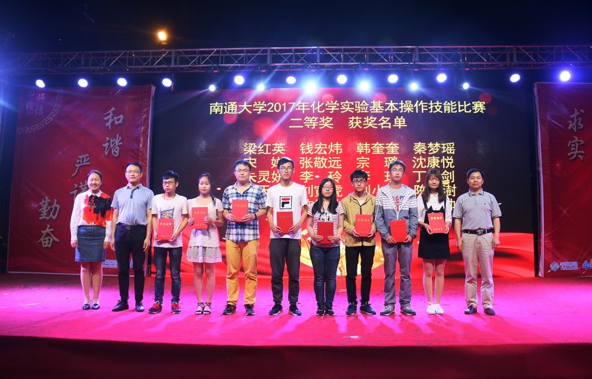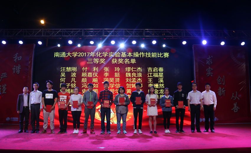 闭幕式上,一段简短的视频带领现场观众们共同重温了第三届化学文化节系列活动的精彩瞬间。云顶国际官方网站第三届化学文化节历时三个月,包括了“‘玩转化学’趣味实验”、“见微知著——我生活中的化学”微摄影大赛、“化学趣味运动会”等近二十项活动,其中化学文化节的重头戏就是承办公司2017年化学实验基本操作技能比赛。本次比赛覆盖了学校文、理、工科19个学院41个专业共计1473人参加。比赛中同学们积极备战,互相合作,最终60名专业组选手、40名非专业组选手从比赛中脱颖而出,经过笔试和实验操作两个环节的激烈角逐和综合考核,最终分别评选出专业组一等奖6人、二等奖12人、三等奖41人,非专业组一等奖4人、二等奖8人、三等奖26人。颁奖晚会上,程纯董事长和出席晚会的领导分别上台为获得一、二、三等奖的选手代表颁发了荣誉证书,并合影留念。