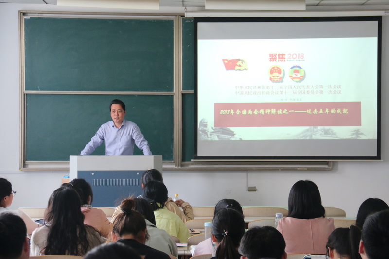 讲座中,朱书记以2018年全国“两会”为主题,带领学员们由浅入深地解读了两会的重点内容和深刻意义。朱晓阳书记从党的指导思想、全面深化改革开放、建设全面小康社会、宪法修订的意义、国家领导机构的选举、机构改革的利弊、完善监察体系这七个方面向学员们普及了两会的重点内容。他着重指出,作为党的接班人,我们一定要贯彻落实十九大精神,明确习近平新时代中国特色社会主义思想的指导思想,确立全面深化改革、夺取新时代中国特色社会主义的伟大胜利的奋斗目标。与此同时,朱书记向同学们阐述了中国特色社会义的宏伟事业,提醒同学们要不忘初心,作出时刻为党的事业贡献终身的准备。朱书记结合参加培训学员们的自身情况,对《政府工作报告》进行了详致的解读,学员们对此都表现出了浓厚的兴趣,整个课堂学习讨论的氛围十分浓烈。