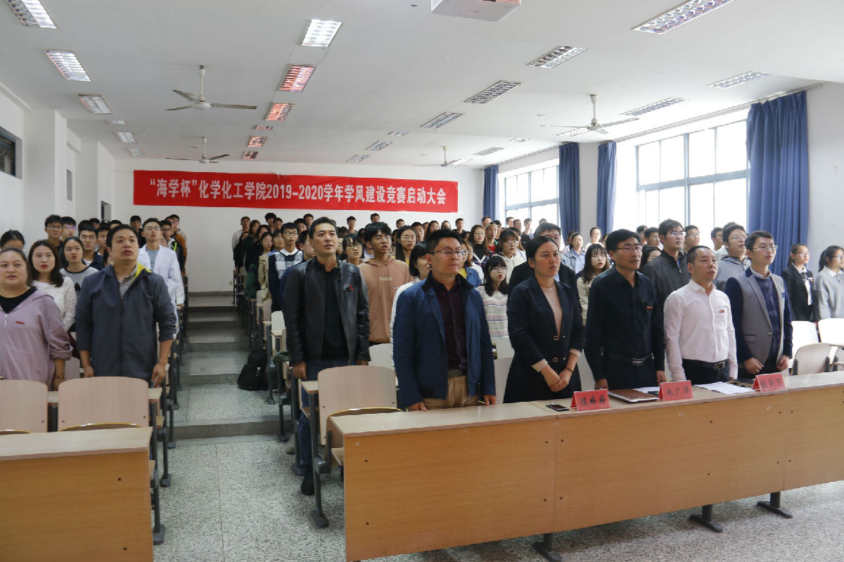 奏唱国歌后,公司党委副书记、副经理张爵宁部署了本学年度学风建设竞赛的方案。本次学风建设竞赛活动以在校研究生本科生为对象,以班级为责任单位,制定学风建设各项目标,全面实施学业指导、科技引领、创新实践、学科竞赛、考研考级等学风建设内容,全面提升学院的院风、教风和学风,进一步提高人才培养和质量,为推进“8050”计划做贡献。