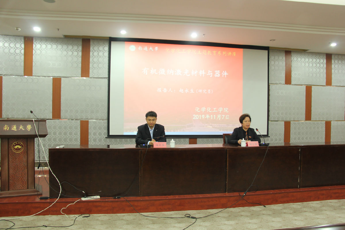 11月7上午9:30,在图书馆508会议室,中科院化学所赵永生研究员为公司师生做了题为“有机微纳激光材料与器件”学术报告,云顶国际官方网站经理胡兰萍主持报告会,相关专业教师和员工参加活动。