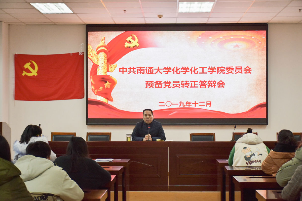 为进一步增强老员工党员发展工作的科学性和公信度,提高老员工党员发展质量,提升员工党员的思想政治素养,严格贯彻落实《高校老员工党员发展工作“三投票三公示一答辩”实施办法》,加强公司党建工作,2019年12月4日下午,公司党委于纺化楼C110举办预备党员转正公开答辩会。参与本次会议的有公司党委副书记、副经理张爵宁老师、学院学工办主任兼18级辅导员陈玥竹老师、学院团委书记兼17级辅导员陈炜老师、员工第二党支部书记兼19级辅导员顾欢老师、本期转正的所有预备党员和11月批次上报的发展对象以及学院全体团支部书记。答辩会由学院团委书记陈炜老师主持,尤文婧、仲伟婷、薛天文三名预备党员作为代表参与答辩。