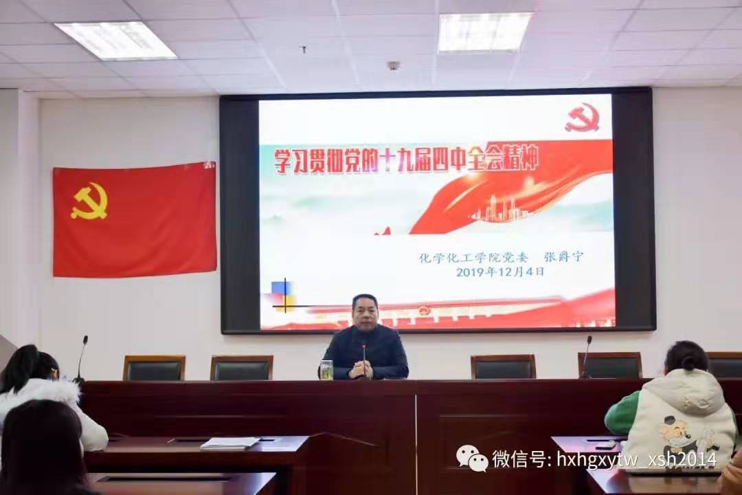 2019年12月4日下午,云顶国际官方网站举办十九届四中全会精神宣讲会。公司党委副书记张爵宁作了题为《学习贯彻党的十九届四中全会精神》的辅导报告,学院全体辅导员、班主任代表、员工党员和入党积极分子及团支部书记参加会议。