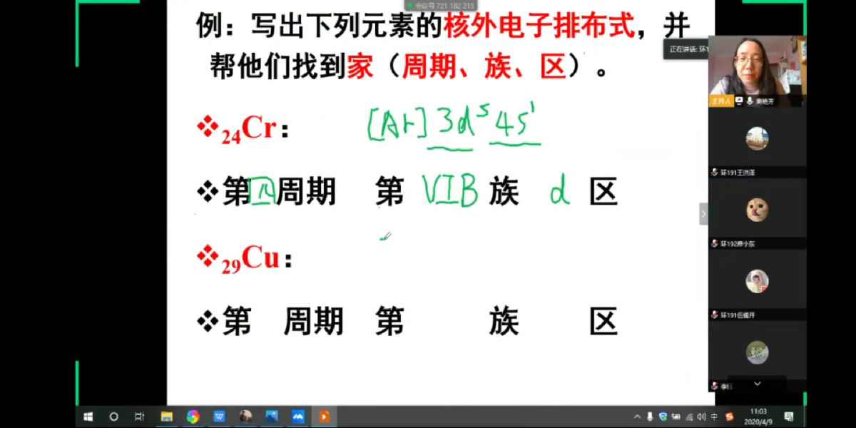 商艳芳老师主讲的《无机及分析化学》课程采用腾讯会议嵌入课堂派直播教学,课前亲自录制微课视频上传至课堂派资料区,员工观看视频完成预习,课堂上采用翻转教学模式,以员工为本,采用提问、完成单选题、拍图题、发送弹幕等多种方式与员工频繁互动,课堂气氛活跃,员工兴趣浓厚。商艳芳老师以大家耳熟能详的《化员工僻字》MV,激发了员工对于化学元素周期表的浓厚兴趣。一张张抓人眼球的个性化元素周期表的呈现,形象直观的反映出了元素的周期性变化规律。商艳芳老师上课准备充分,教法谙熟,通过设置启发性的问题引导员工主动思考,探究发现,将一个个迷路的元素准确无误地带回了他们自己的家。商艳芳老师深入挖掘元素周期表中蕴含的课程思政,在保证学科完整知识体系的同时,丰富了学科价值和育人价值的内涵,实现了知识传授和价值引领的有机统一。