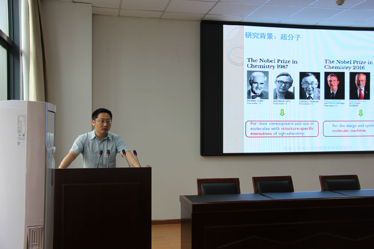 此次学术沙龙的主题是“合成化学之美”,年轻教师王阳博士和姚勇教授分别作了题为《有机小分子不对称氧化策略的应用》以及《大环超分子化学自组装》的报告。两位报告人从小分子的设计合成到大分子的构筑及自组装性质都做了详细的讲解。参加学术沙龙的教师和研究生讨论热烈,精神饱满,效果显著。