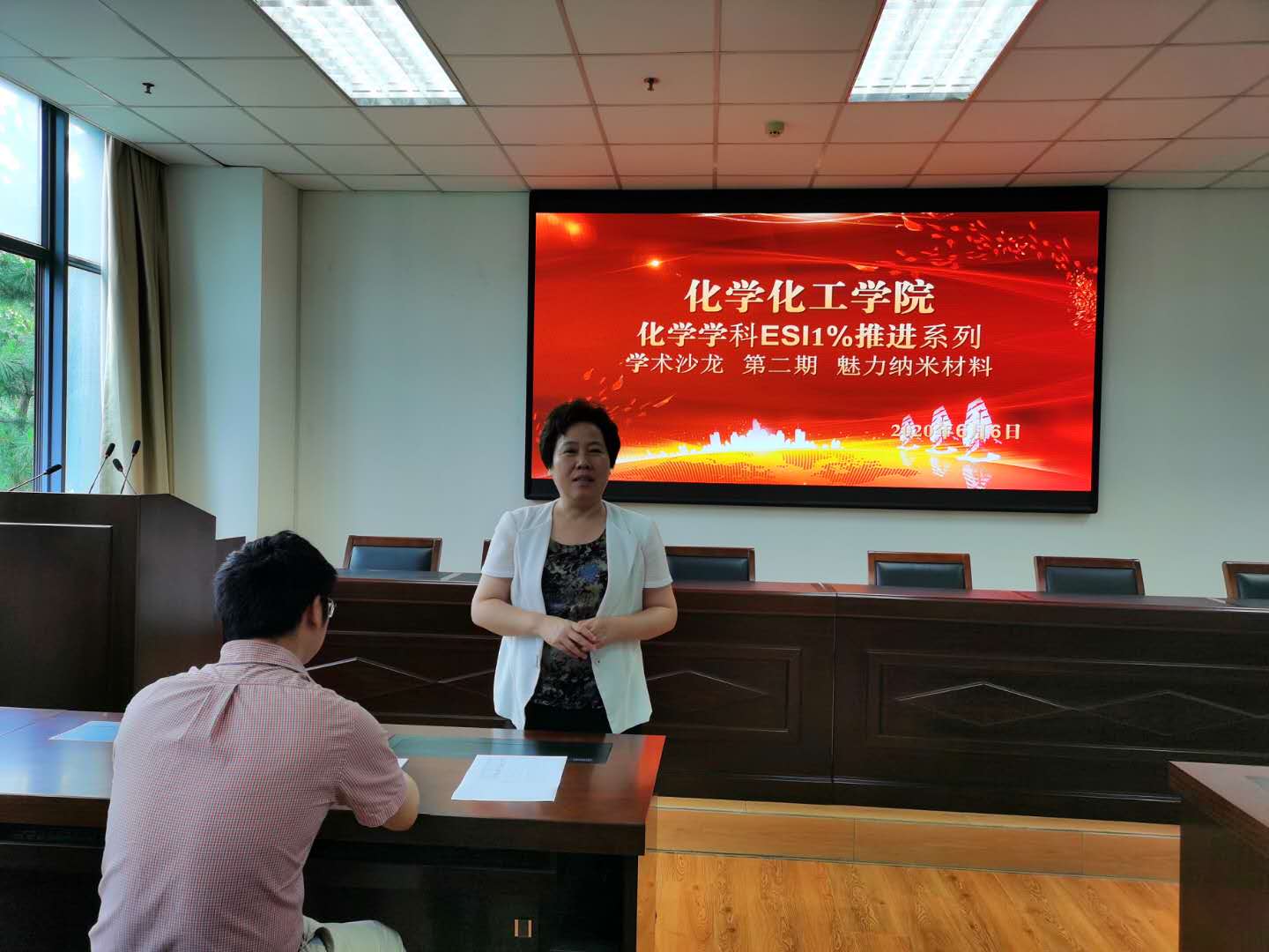 姚勇教授首先指出学术沙龙是学院提升科研实力的重要阵地,是推进化学学科进入ESI前1%的重要抓手,是提升学院科研氛围、促进学院学科交流和融合、产生出更多的思想和火花的重要手段。同时姚勇教授强调了全体青年教师继续努力,将学院论文基数和引用做大做强,积极和外单位合作,跨越式推进化学学科ESI前1%。