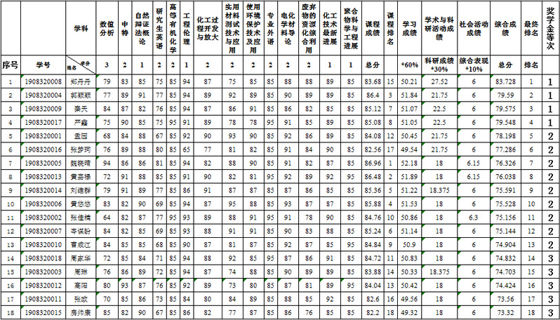 关于2020年研究生学业奖学金排名的公示
