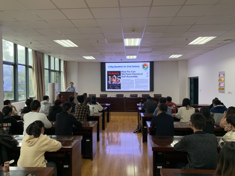 随后,姚勇教授做了题为“Nanostructures Prepared from Self-Assembly of Pillararene-Based Macrocyclic Amphiphiles and Supramolecular Amphiphiles.”的学术报告。姚勇教授从2005年美国科学杂志撰文21世纪人类亟需解决的125个重大科学问题中唯一涉及化学的问题“我们能够推动超分子化学自组装走多远”展开。针对这一前瞻性的科学问题,基于最新一代大环超分子主体化合物----柱芳烃,就两亲柱芳烃和超分子两亲柱芳烃的合成、构筑、自组装形貌调控、环境响应性以及结构和性质的关系以及在多个领域的广泛应用,做了精彩的报告。