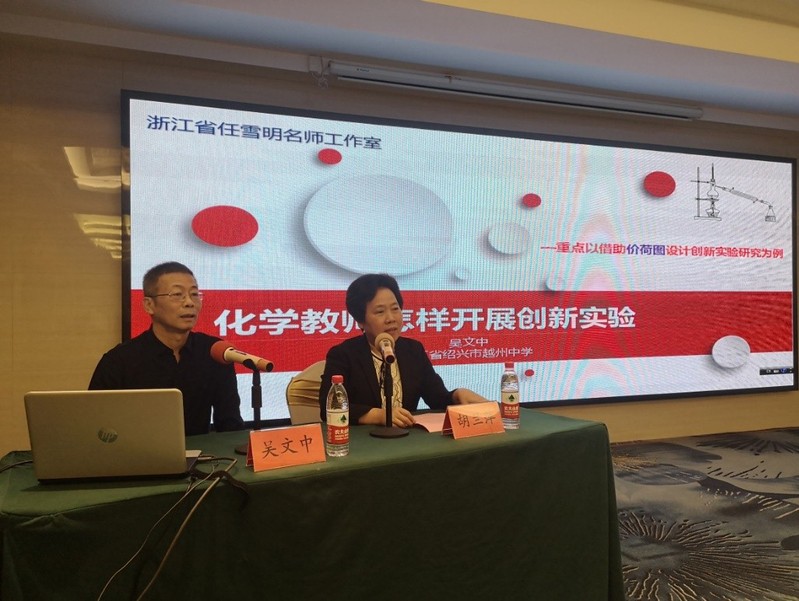 本次培训着眼于解决高中化学教师教学的实际问题,充分体现“协同培训”和“学思做合一”的培训特色,力图构建有机整合、相互渗透、着眼于解决实际问题的体验式培训体系。浙江省绍兴市越州中学吴文中教授作了题为《化学教师怎样开展创新实验》的首场专题讲座。