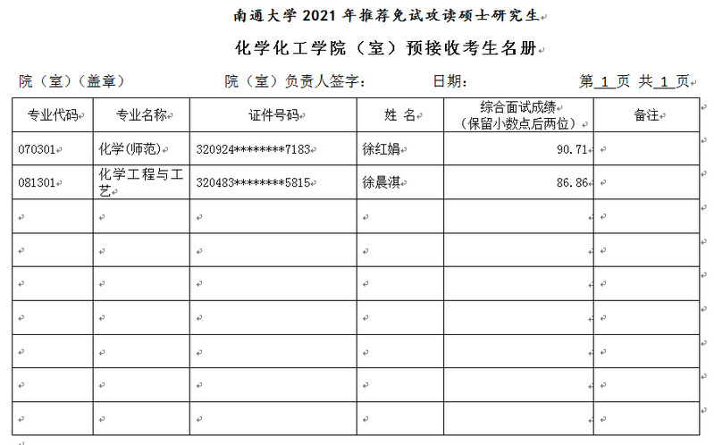 2021年推荐免试攻读硕士研究生云顶国际官方网站与接收考生公示