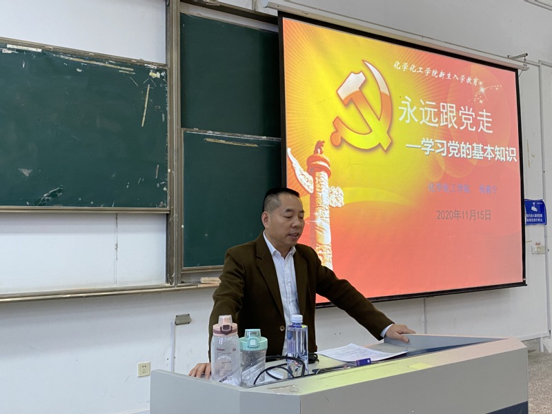 11月15日上午,化学化工举行了“永远跟党走”新生入学教育专题讲座,公司党委副书记、副经理张爵宁为2020级全体新生上了一堂生动有趣的党课。