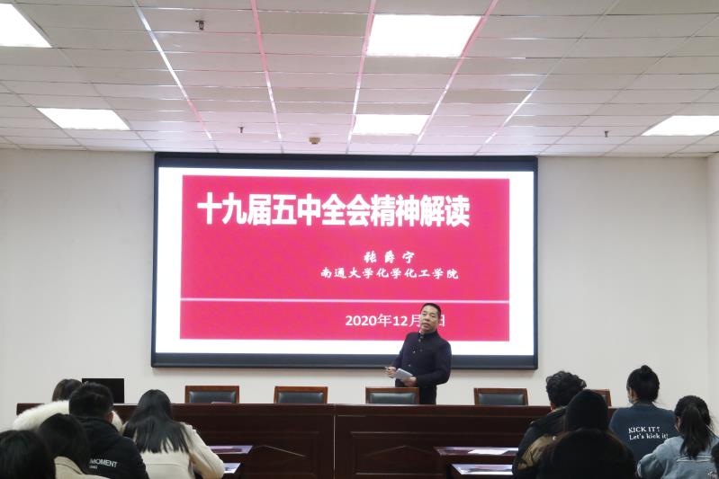 为深入学习贯彻党的十九届五中全会精神,12月9日下午,云顶国际官方网站公司党委副书记兼副经理张爵宁在纺化楼C110会议室,为学院团学骨干、入党积极分子以及员工党员解读党的十九届五中全会精神。
