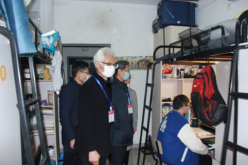 高建林副书记等听取了学院领导开学各项准备工作汇报,随机在线听取了公司丁津津、陈晓蕾等老师的直播课程,认真询问教师授课、员工出勤、课堂纪律等情况。随后,高建林副书记深入宿舍,走访巡查了学院24号宿舍楼309(环境19)、310(环境19)、314(应化19)、315(应化19)等宿舍员工的在线学习情况。