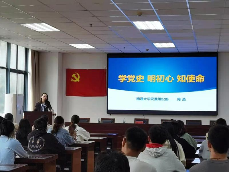 党课第一讲由陈燕主讲,她以“学党史 明初心 知使命”为题,从中国共产党的酝酿、成立以及中共党人的初心和使命为同学们做了介绍。(文/王梓嫣 摄/焦婉清)