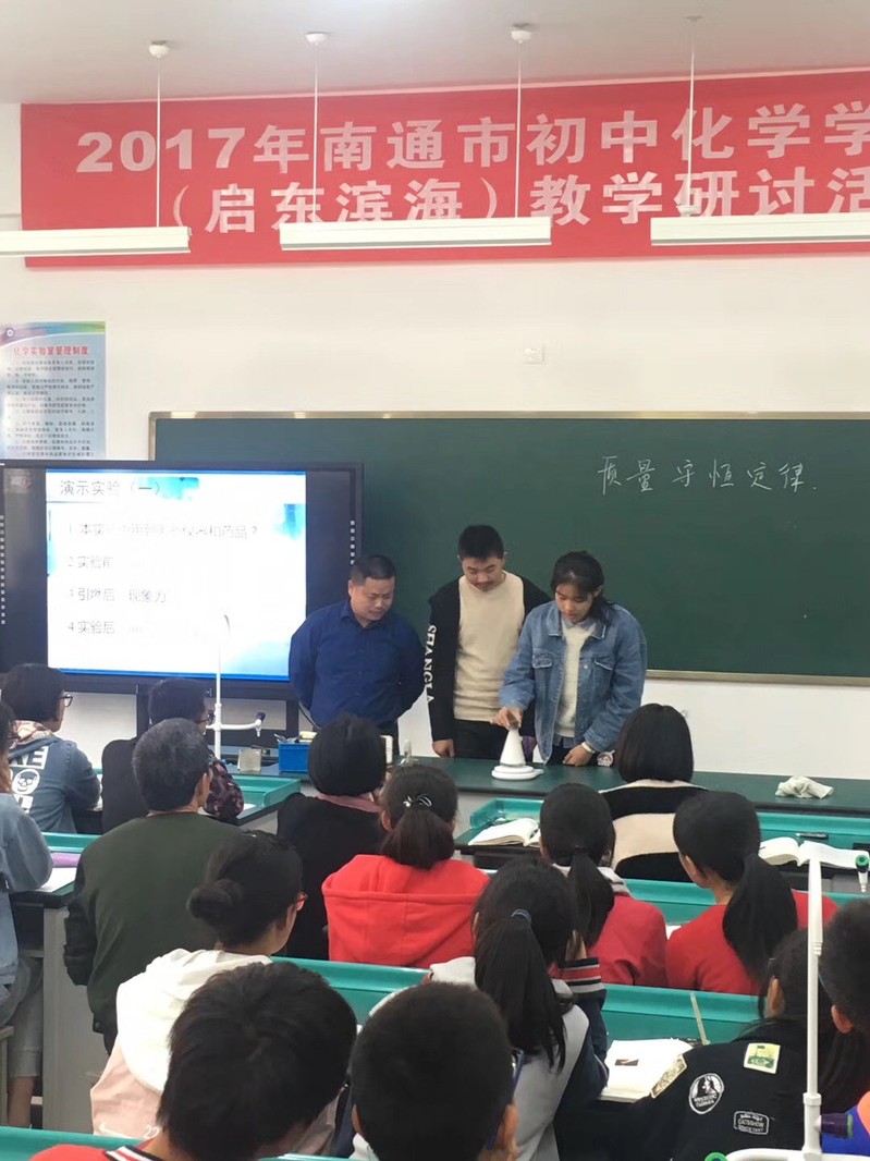 本次教育见习活动主要包括三方面的内容:模拟教学、听课和见习总结。本次听课见习地点为启东滨海实验学校,员工分成两组听取了5位老师的公开课,分别为:海门市城北初级中学朱水娟老师和启东市折桂中学龚金辉老师执教的水的组成;通州区西亭初级中学程卫忠老师和启东市滨海实验学校王劲松老师执教的质量守恒定律;如东县新区初中刘广斌老师执教的燃烧和灭火。