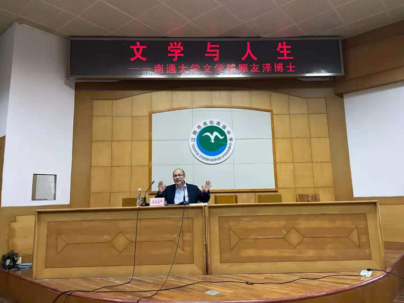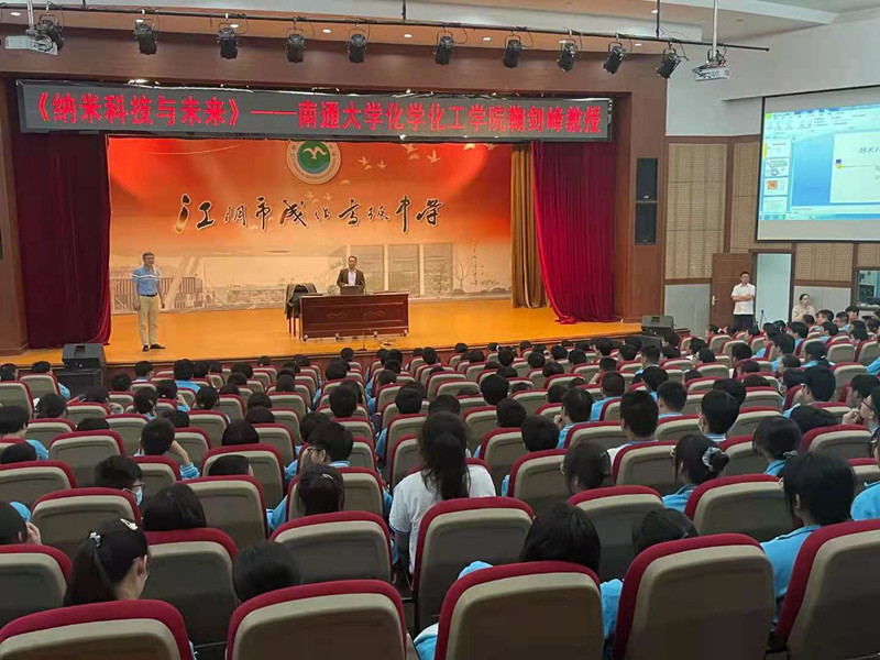 5月19日晚,云顶国际官方网站教授(博士)讲坛系列讲座走进江阴市成化高级中学。化工学院的鞠剑峰教授、文学院顾友泽教授分别为高中学子做“纳米科技与未来”和 “文学与人生”的主题讲座。云顶国际官方网站副书记张爵宁,综合办公室副主任吴增辉及成化中学300余名员工参加了讲座。