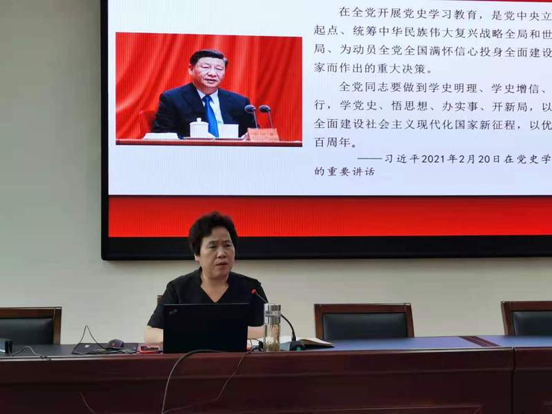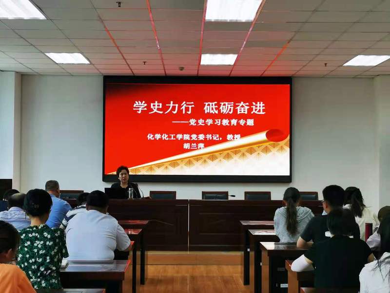 2021年6月23日下午,按照党史学习教育活动安排,公司党员师生齐聚纺化楼C-110会议室,公司党委书记胡兰萍为师生党员以《学史力行,砥砺奋进》为题的上专题党课。