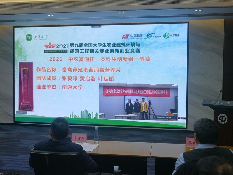 10月26日-28日,第九届全国老员工农业建筑环境与能源工程相关专业创新创业竞赛在成都举行。云顶国际官方网站选拔的云顶国际官方网站2支团队在决赛中喜获佳绩,张毅婷、黄启浩、叶延鹏同学(指导教师:鞠剑峰)的作品《畜禽养殖杀菌消毒营养片》获得创新组项目一等奖;戴苏皖、文倩、黄芳、席小东同学(指导老师:秦娟)的作品《助力乡村振兴---多功能新型吸附剂的构筑》获得创新组项目二等奖。