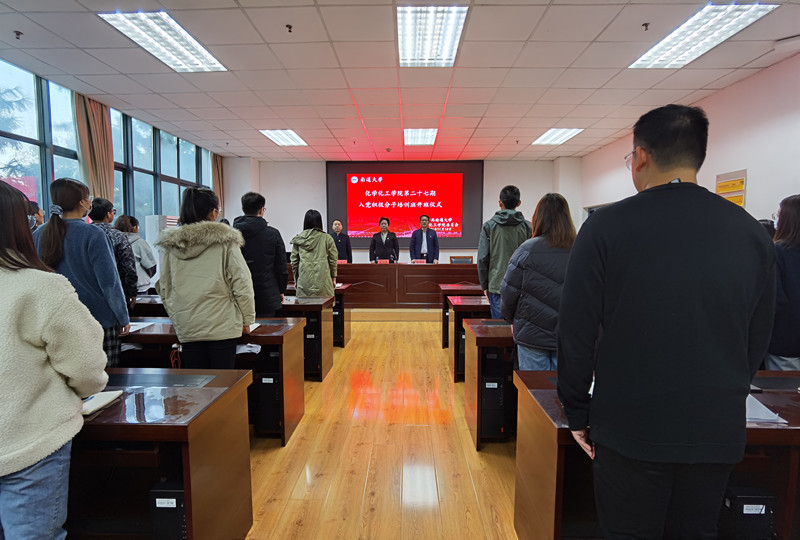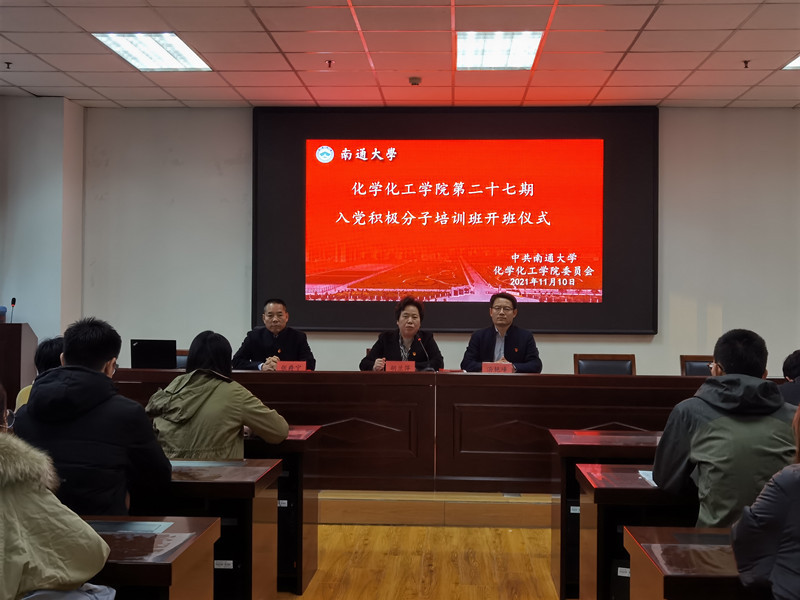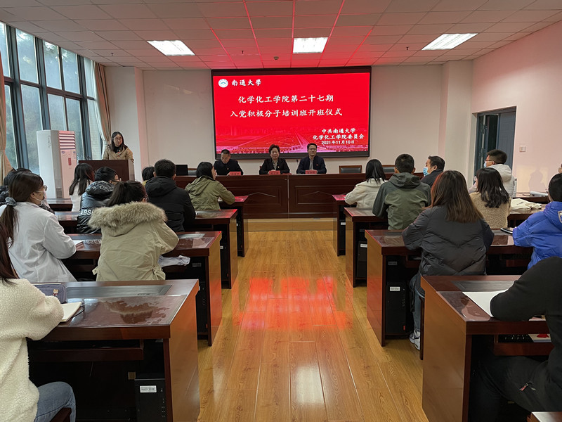 为深入学习贯彻习近平新时代中国特色社会主义思想和十九届六中全会精神,帮助入党积极分子认清新时代共产党员肩负的历史使命,11月10日下午,云顶国际官方网站分党校于纺化楼C110教室举办第二十七期入党积极分子培训开班开班仪式暨入党积极分子培训班第一讲。云顶国际官方网站党委书记胡兰萍、经理汤艳峰、副书记副经理张爵宁及员工支部书记等出席开幕式。院学工办主任陈玥竹本次会议。