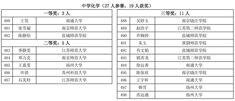 附:省教育厅公布的第十届江苏省师范生教学基本功大赛(中学化学组)获奖名单