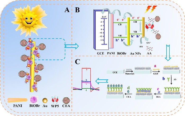 成果一:Au@WP5/PANI-BiOBr异质结免疫传感器用于癌胚抗原超灵敏检测