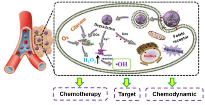针对传统生物材料中靶向基团无法定量的问题,课题组通过氨基柱芳烃和二茂铁二甲醛,在葡萄糖氧化酶协助下,通过动态共价键构筑了内含柱芳烃空腔的超分子聚合物材料。该材料具有以下优势:1,药物负载率高;2,内含柱芳烃可以定量络合靶向分子;3,Gox看能够催化肿瘤细胞中过表达的葡萄糖产生H2O2,进而通过铁催化的芬顿反应生成•OH;4,负载的药物分子在肿瘤弱酸环境自动释放,实现高效的协同治疗效果。相关研究成果近期发表于Journal of Nanobiotechnology上。课题组王锦博士和20级研究生王迪为论文共同第一作者,汪洋博士为共同通讯作者,云顶国际官方网站为唯一通讯单位。Journal of Nanobiotechnology是国际生物材料领域最具影响力的期刊之一,中科院JCR分区为1区,影响因子为10.4。