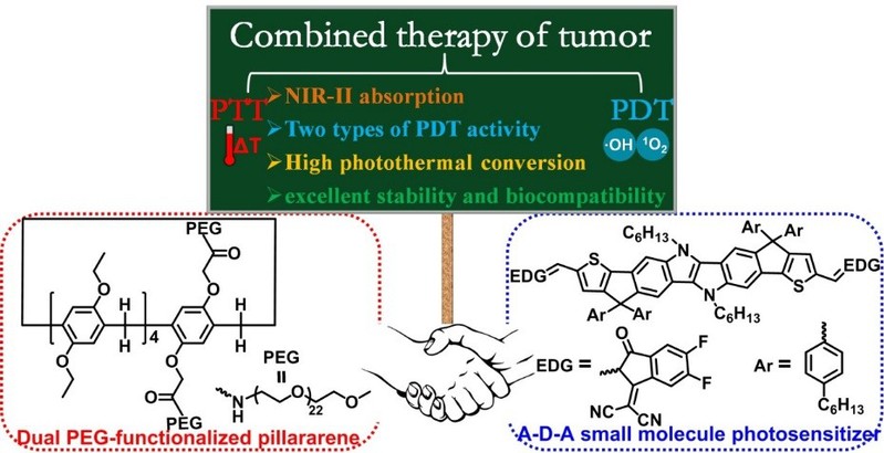成果二:柱芳烃联姻A–D–A型稠环分子用于肿瘤高效光热和光动力联合治疗