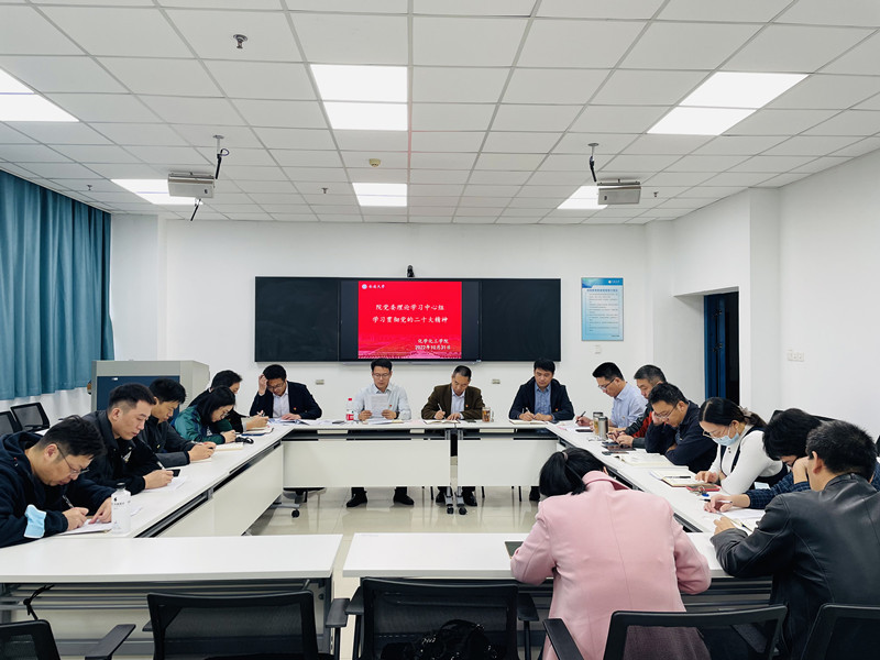 汤艳峰经理带领大家学习二十大报告的主题,重点学习报告中一个中心任务、第二个答案、两个“行”、三件大事、三个务必、五个重大原则、五个必由之路、六个必须坚持、关于中国式现代化、关于全面建设社会主义现代化国家、推进国家安全体系和能力现代化等一系列新表述新概括新论断。就下一阶段深入学习贯彻党的二十大精神,汤艳峰经理提出三点意见。一是要全面深入学习。结合习近平新时代中国特色社会主义思想学习二十大精神的丰富内涵和核心要义,党员师生要开展多形式、多层次教育培训,确保把二十大会议精神把握准、理解透、落实好,打通最后一公里。二是要思想和行动统一到党的二十大精神上来。学院要教育与引导广大青年师生坚定不移听党话、跟党走,心怀梦想、脚踏实地,敢想敢为、善作善成。三是要学以致用,狠抓落实,紧密结合学院实际工作。全院师生要将“祈通中西,力求精进”的校训精神与二十大报告精神紧密结合,加快推进学院团队建设、专业建设、人才培养等各项工作再上新台阶,有计划、有部署、有目标、有方案、有要求推动学院高质量发展,力争为学校跨越式发展作出更大贡献。