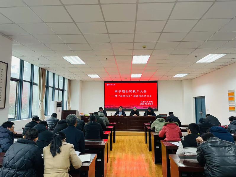 经理汤艳峰带领全院教职工认真学习了学校“两代会”上公司党委书记尚庆飞《共担新使命,同塑新辉煌》的讲话精神和董事长施卫东《凝心聚力,勇毅前行,为建成特色鲜明的高水平大学不懈奋斗》的学校工作报告内容。他指出,2023年是全面贯彻落实党的二十大精神的开局之年,学院要按照尚庆飞书记要求,继续发扬“敢为、敢闯、敢干、敢首创” 的干事创业精神,在新的一年重点做好以下几方面工作,一是要继续深入学习贯彻党的二十大精神,落实党的各项工作要求,加强党员师生的思想政治教育,推进新时代党的建设新的伟大工程;二是要紧扣学校各项工作要求,以目标考核为导向,推进团队建设、人才培养、科学研究等工作,踔厉奋发,勇毅前进,进一步提升学院高质量发展水平;三是要加强学院平台建设和制度建设,以实验室规划为契机,切实做好平台建设,加强实验室安全保障,全院师生要团结协作,建立健全各项规章制度,开创学院发展新篇章。