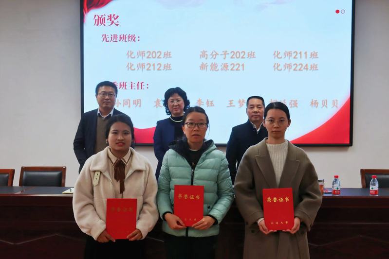 会上,与会领导分别宣读表彰名单并为获奖集体及个人颁奖。优秀班主任高分子202班班主任代表袁小磊发言,先进班级代表化师211李佳发言。学工办主任陈玥竹老师部署了2023-2024学年度学风建设工作。